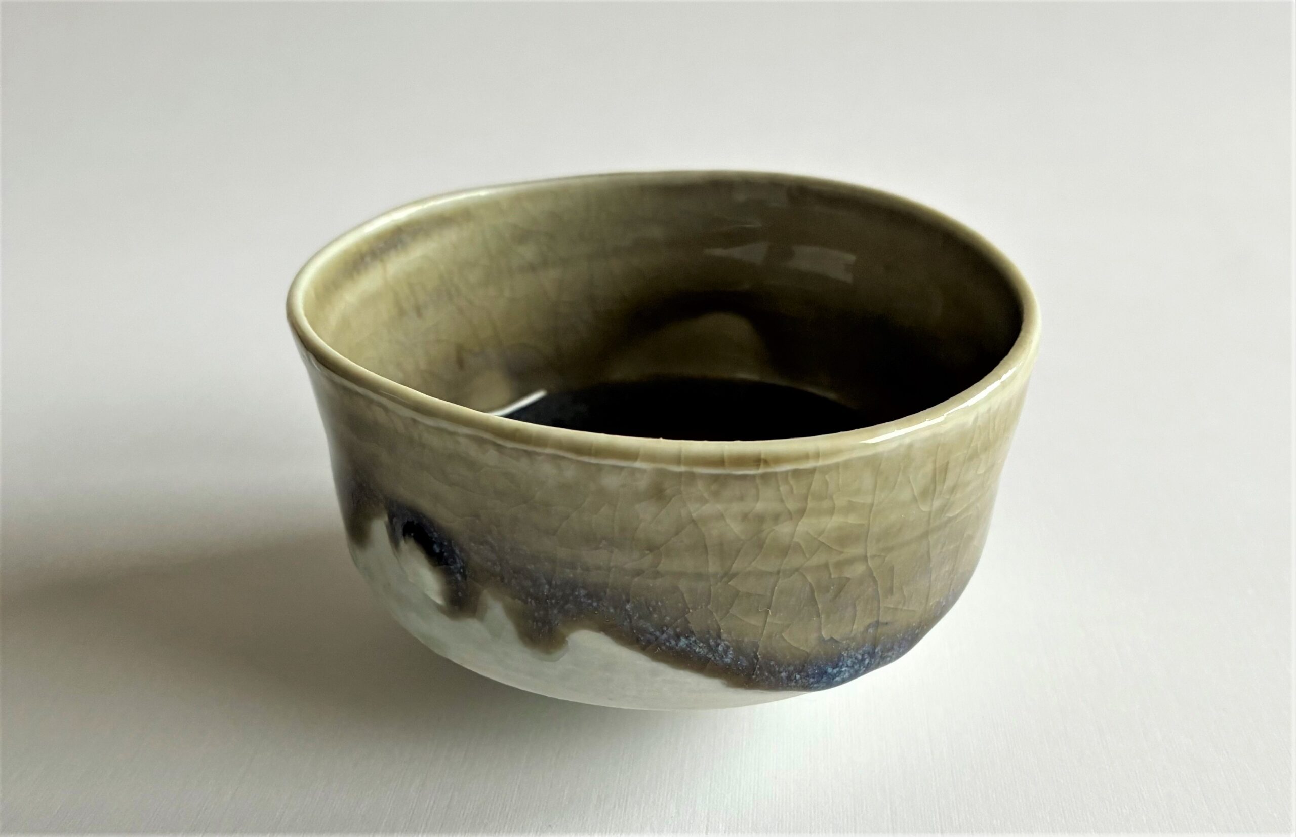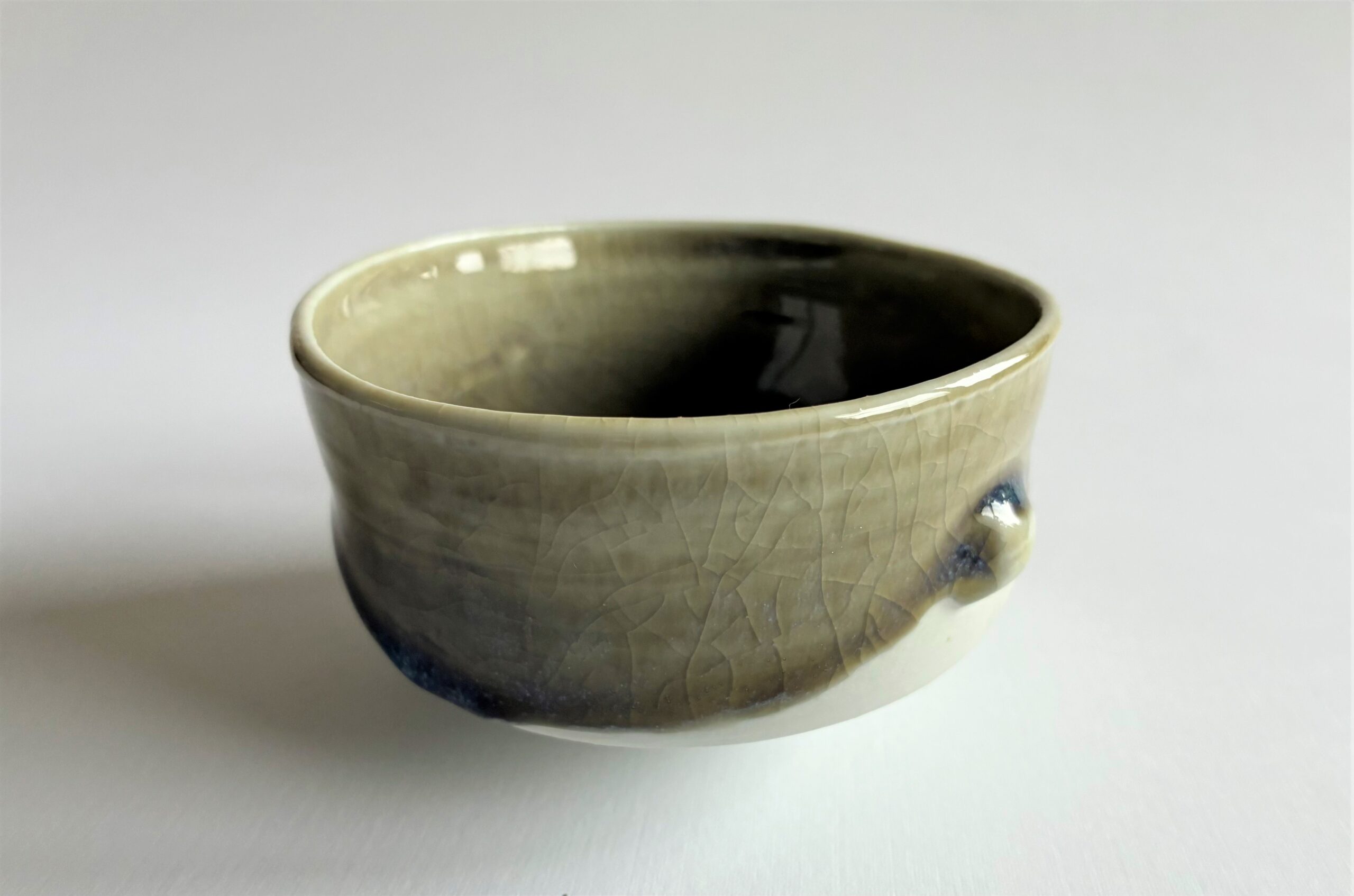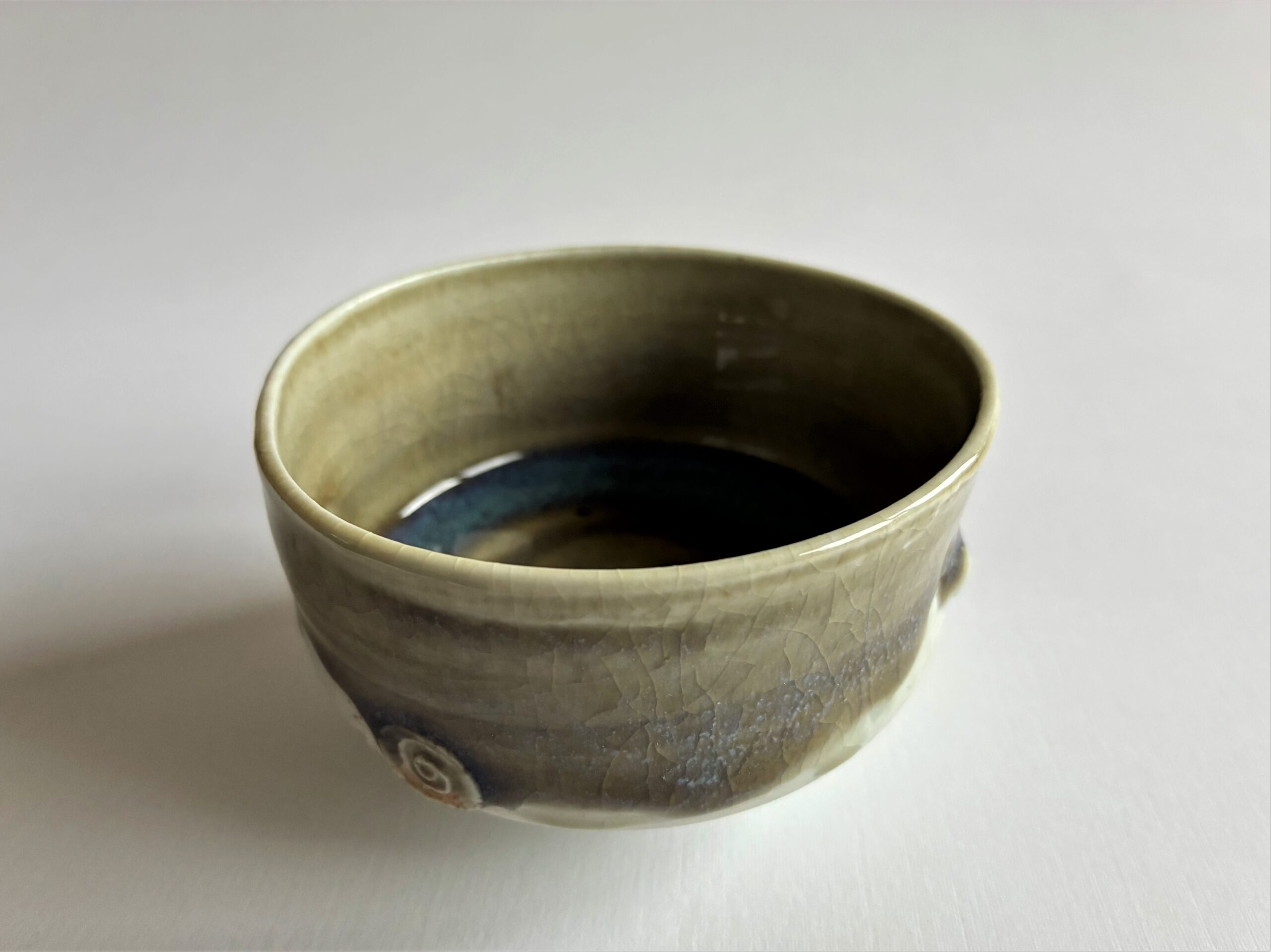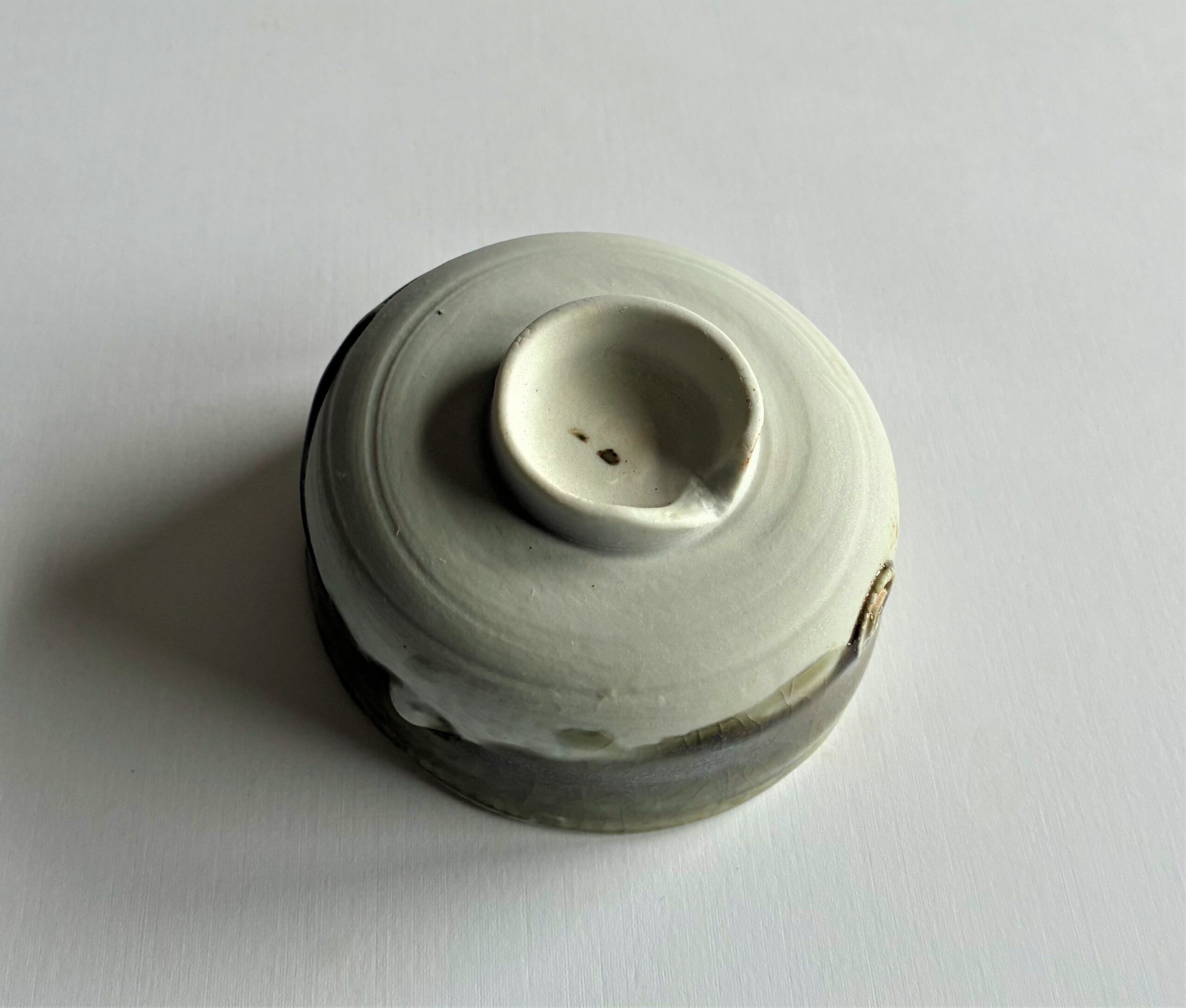9,5 cm s átmérőjű, 5,5 cm magas, 1320 fokon fatűzben égett porcelán.