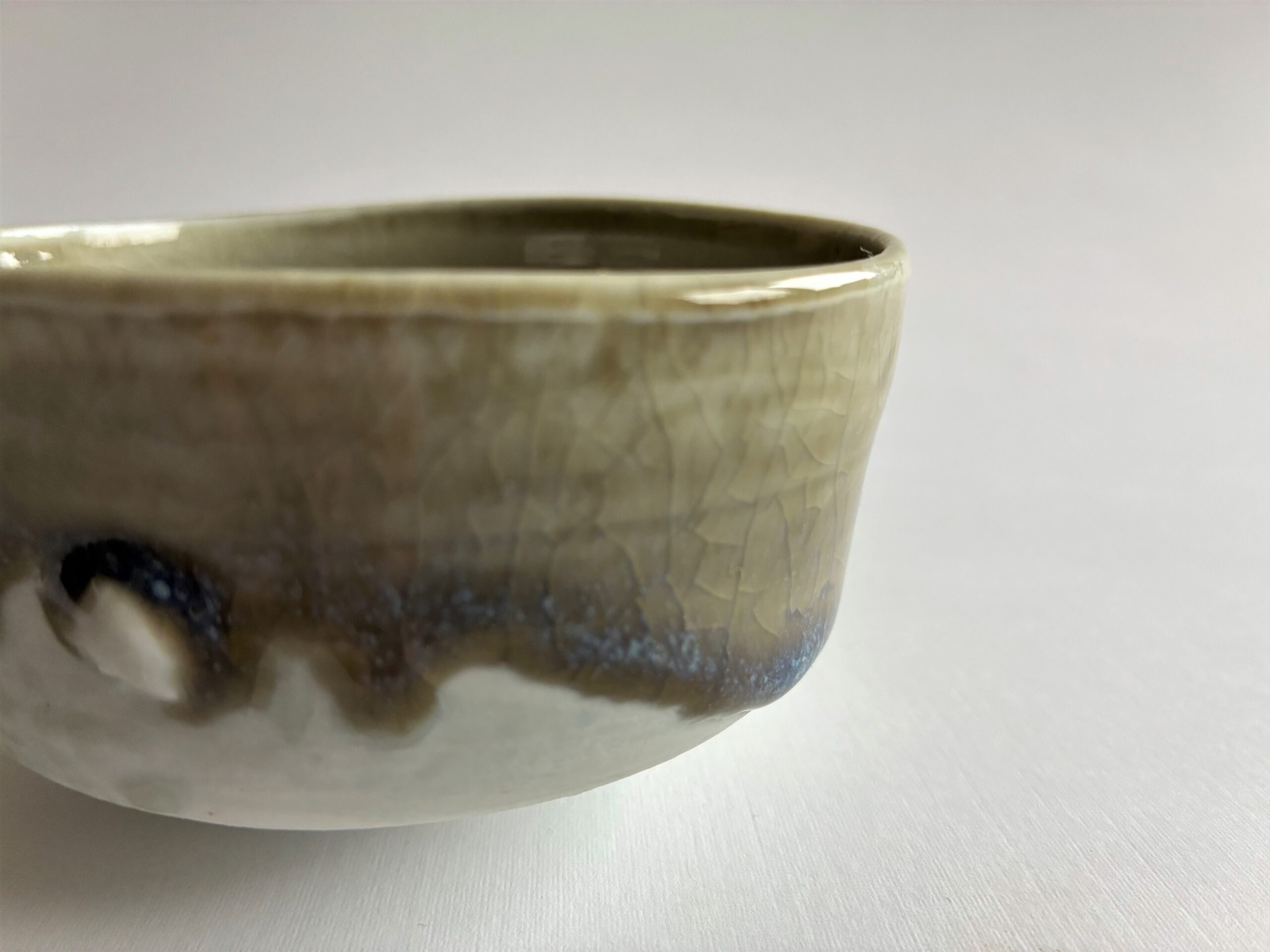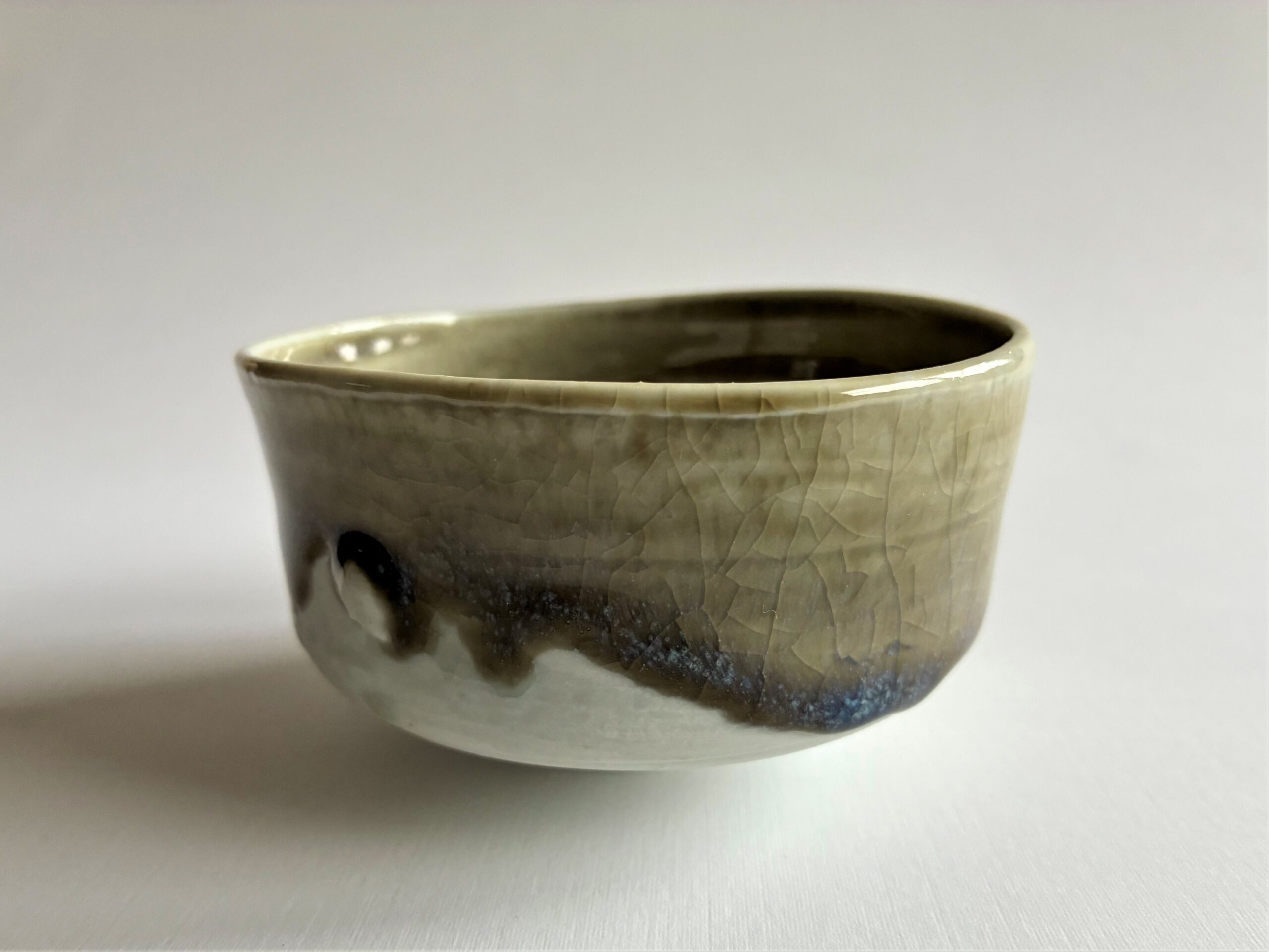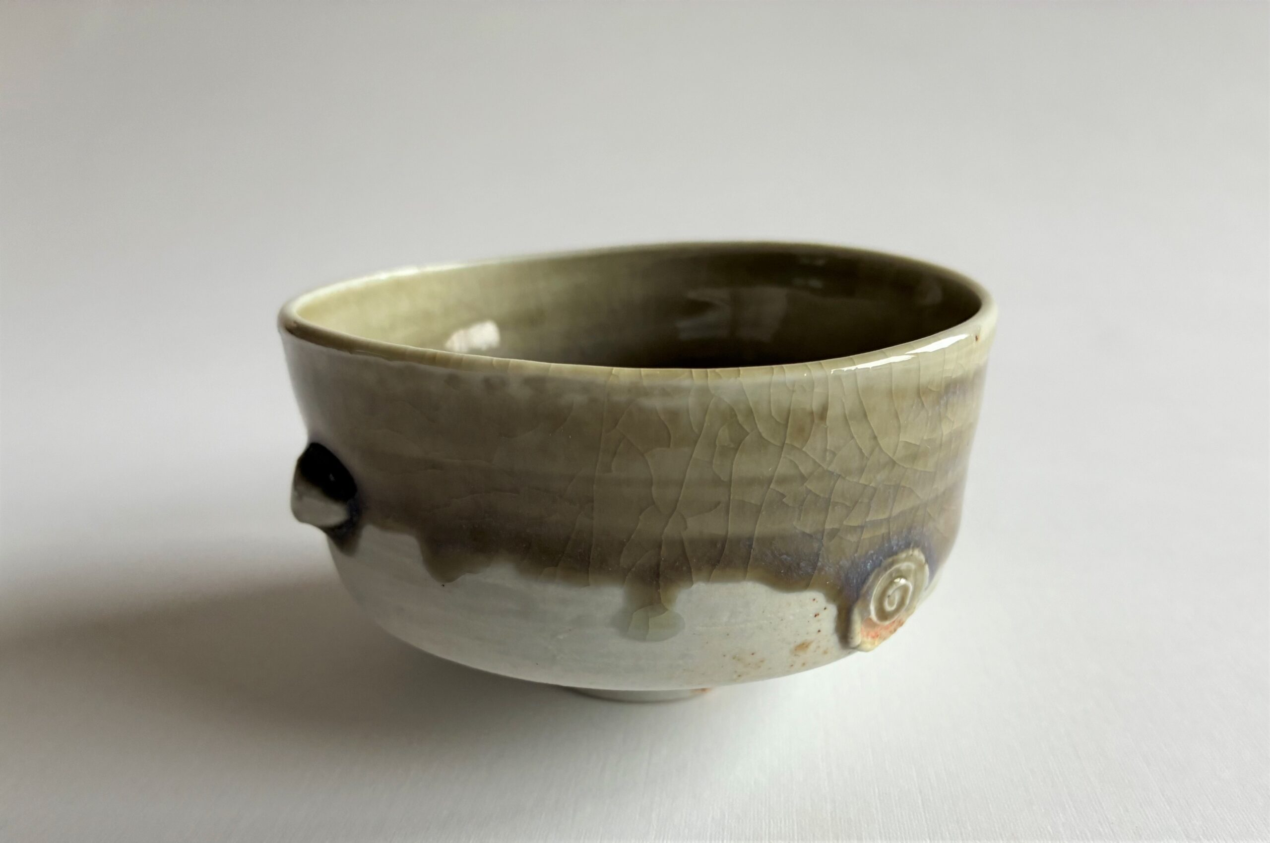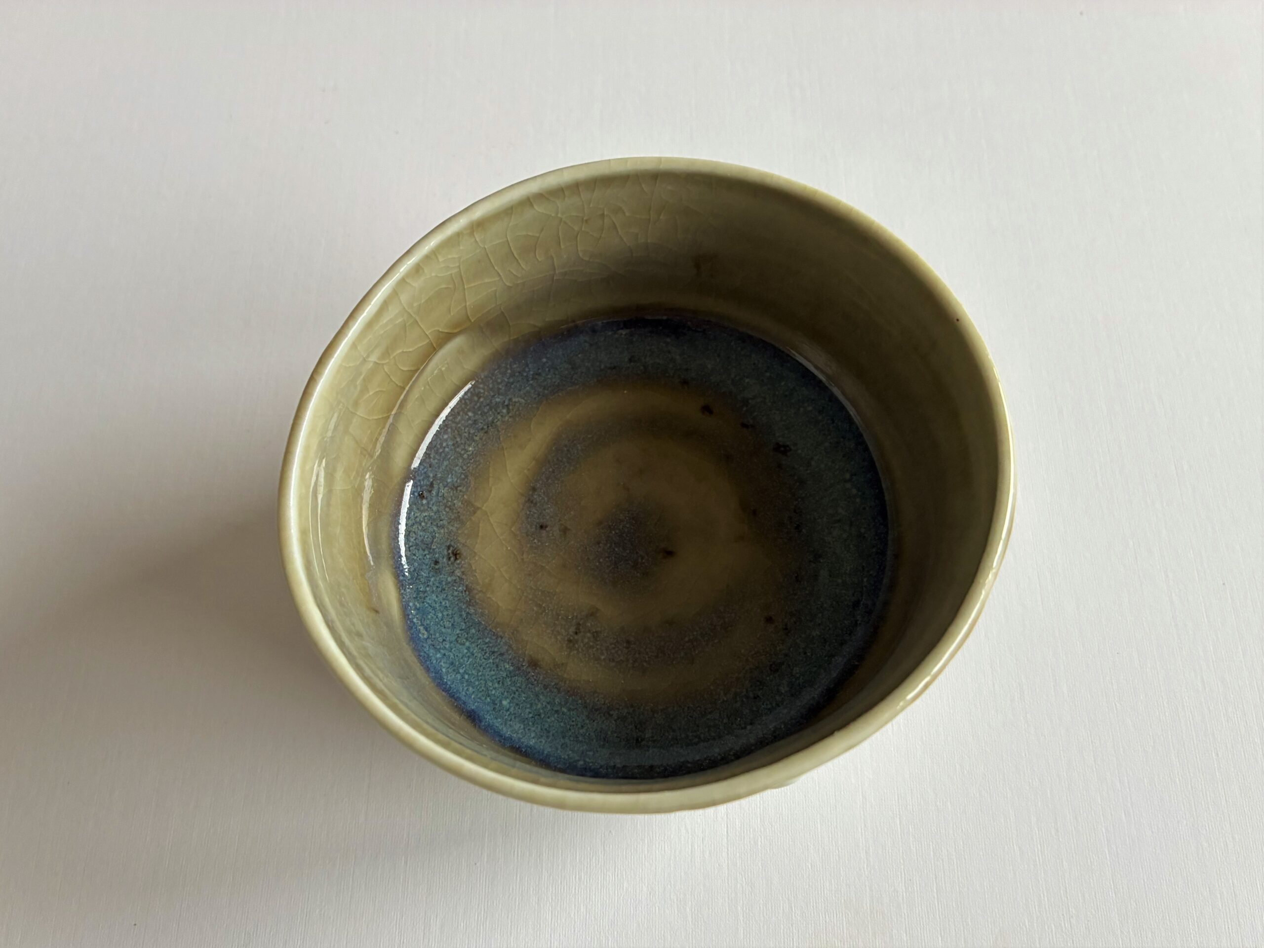 9,5 cm s átmérőjű, 5,5 cm magas, 1320 fokon fatűzben égett porcelán.