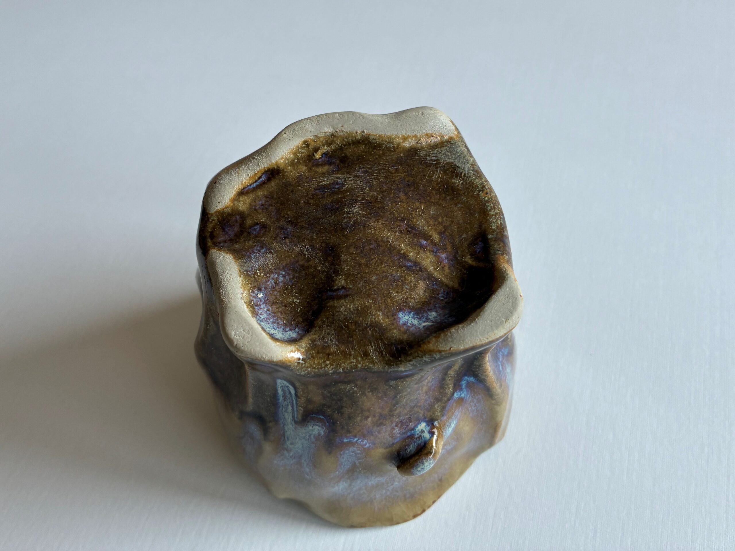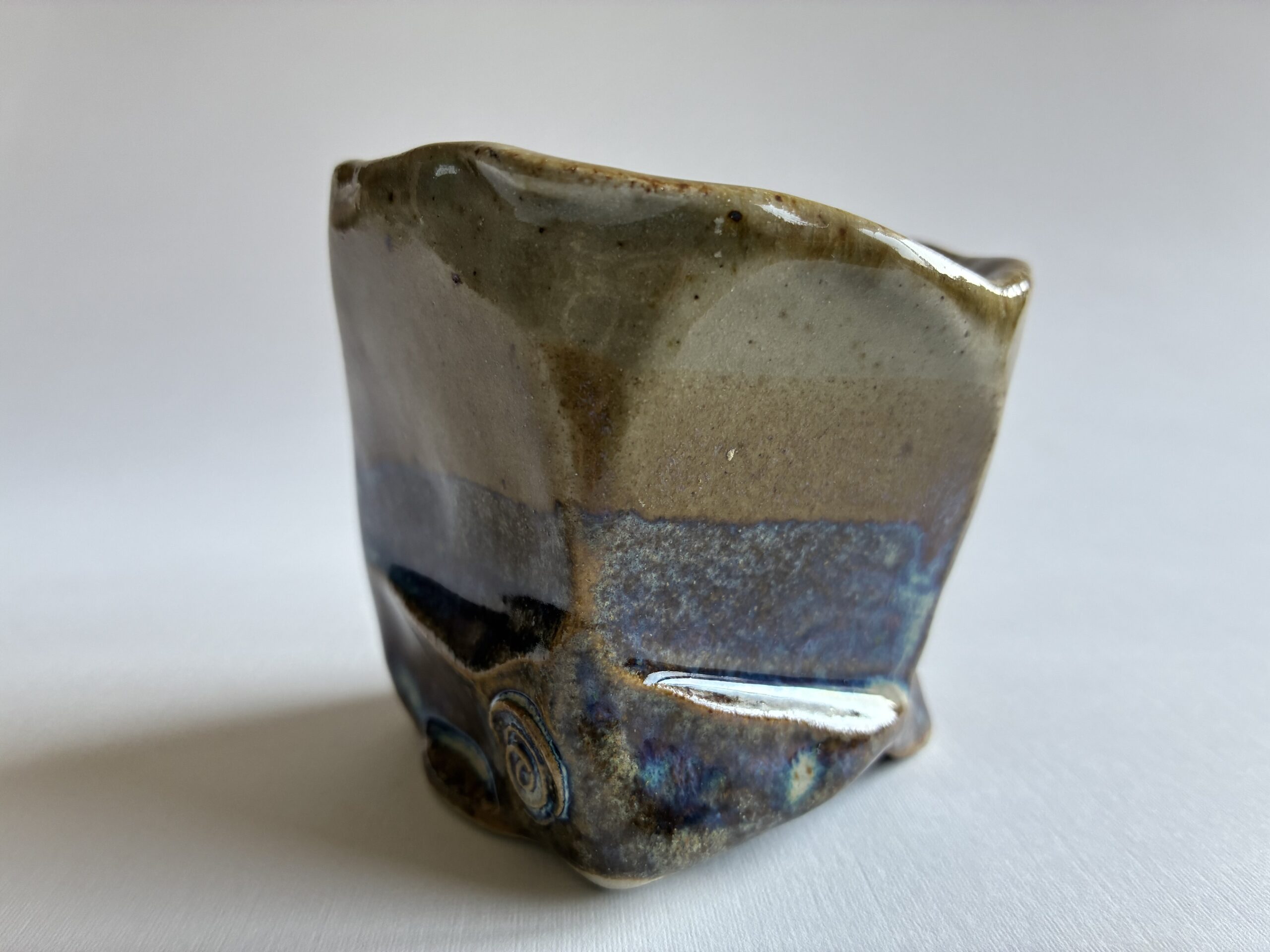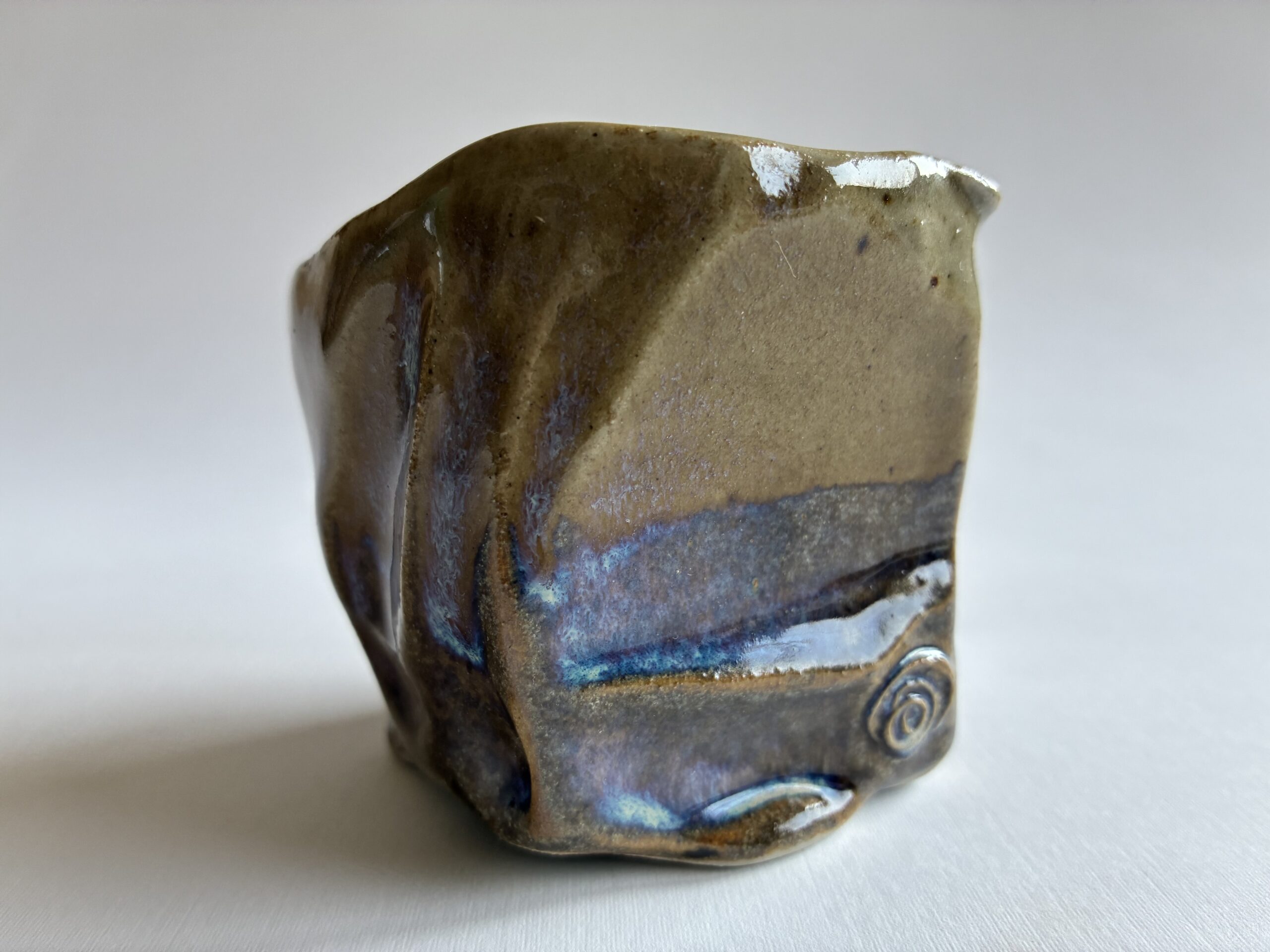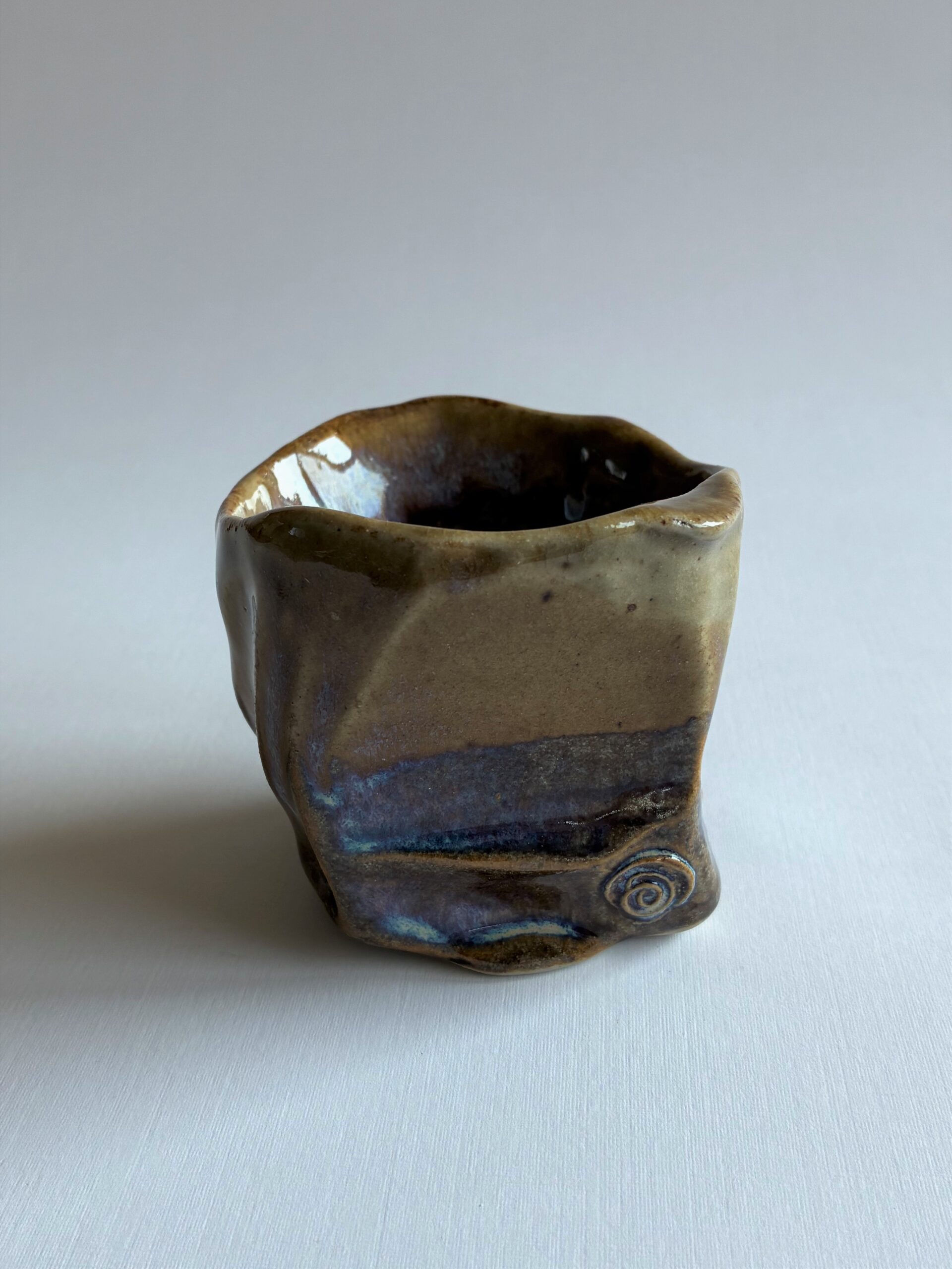 Ez a csébor 8 cm széles és 7 cm magas, kőagyagból készült, 1320 fokon tüzeskedett.